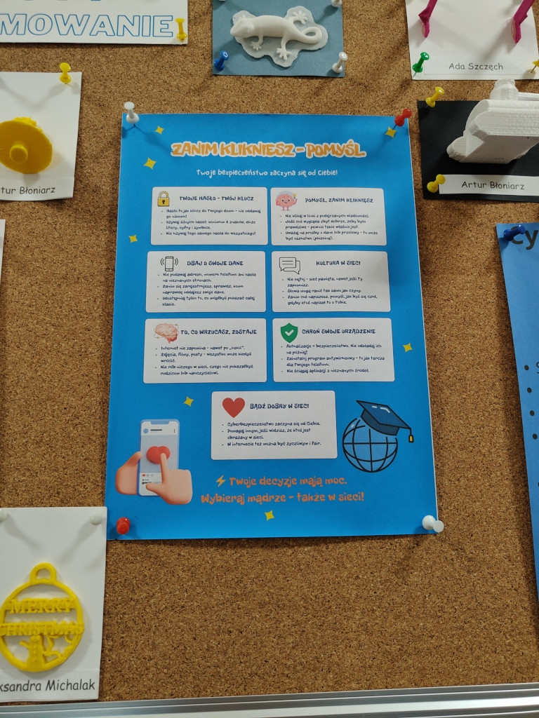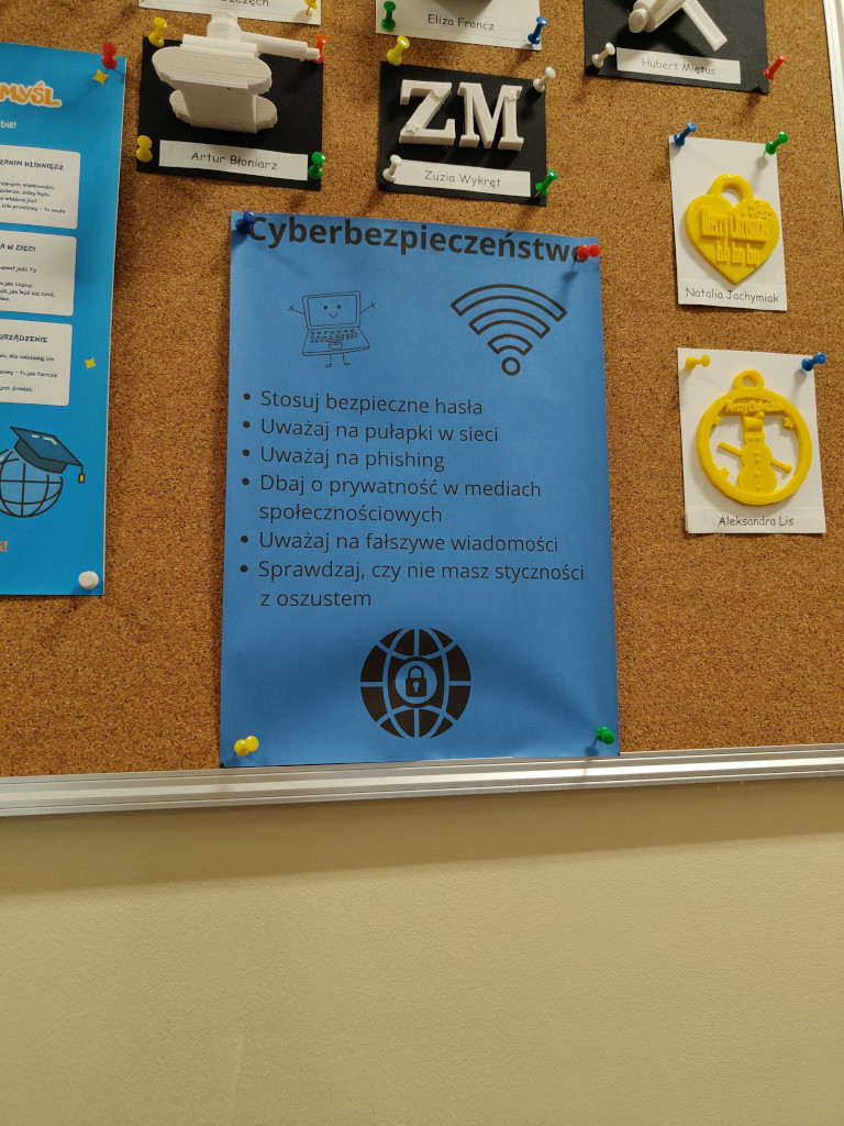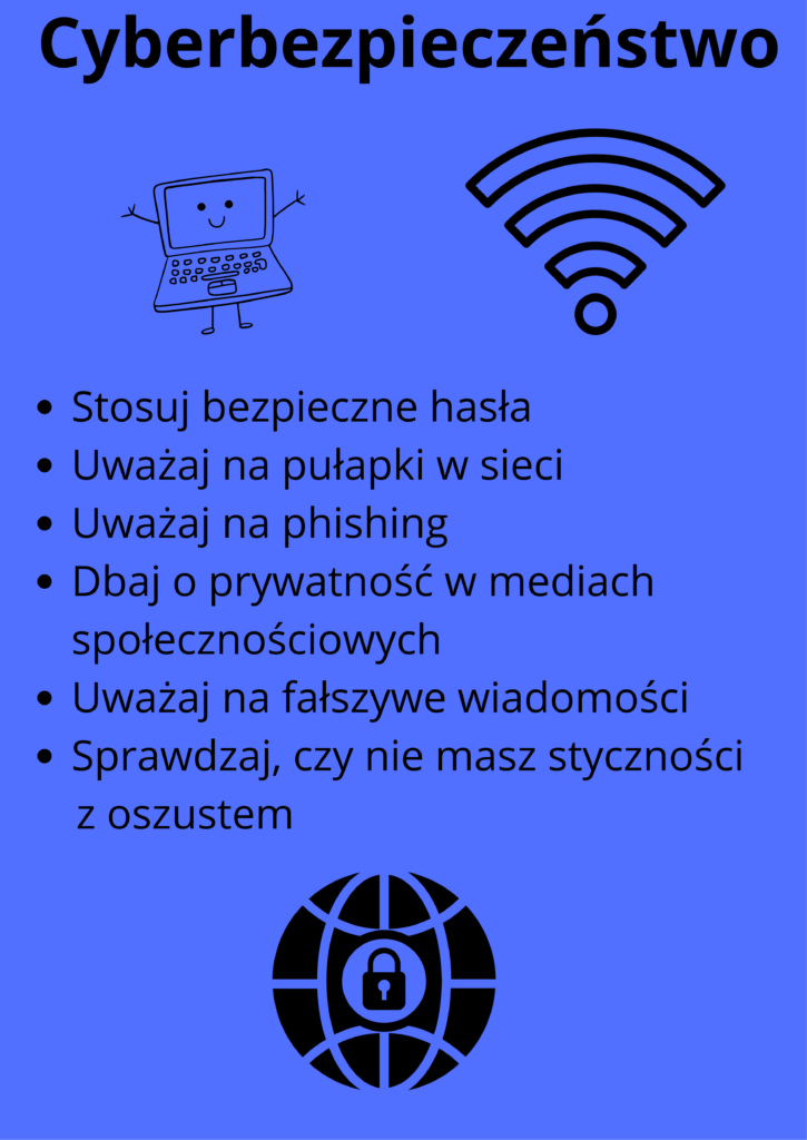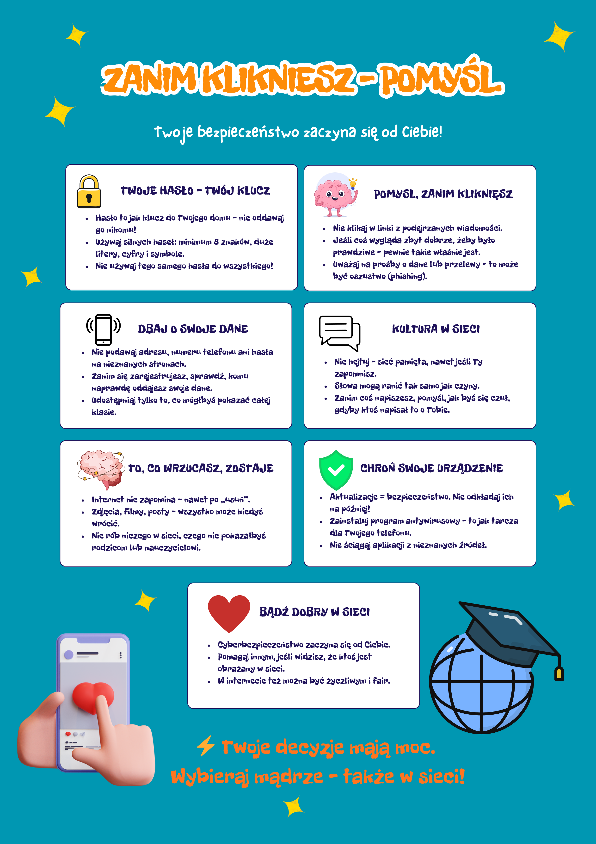 Uczniowie przygotowali zestaw materiałów edukacyjnych dotyczących cyberbezpieczeństwa. Efektem ich pracy są:
