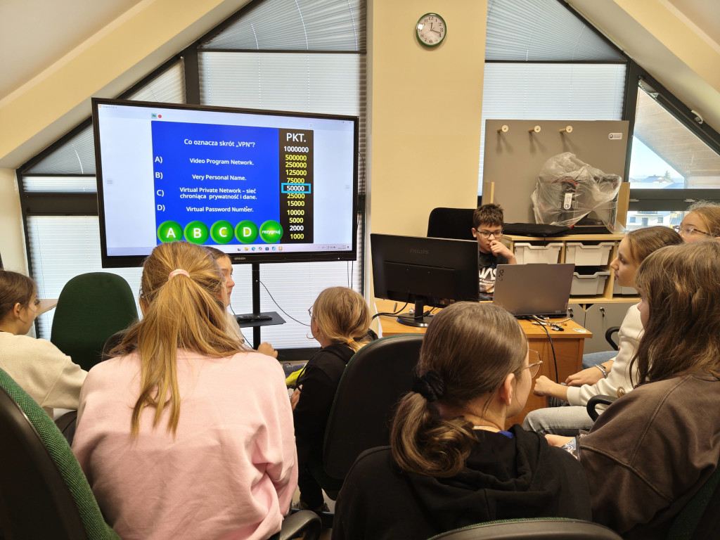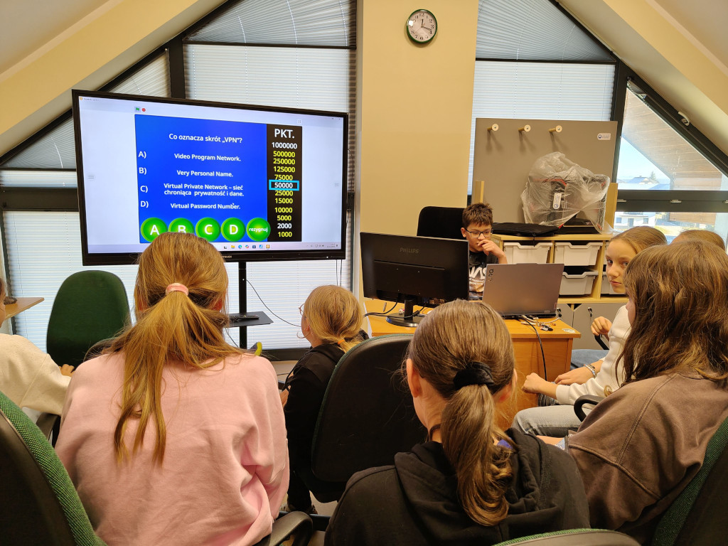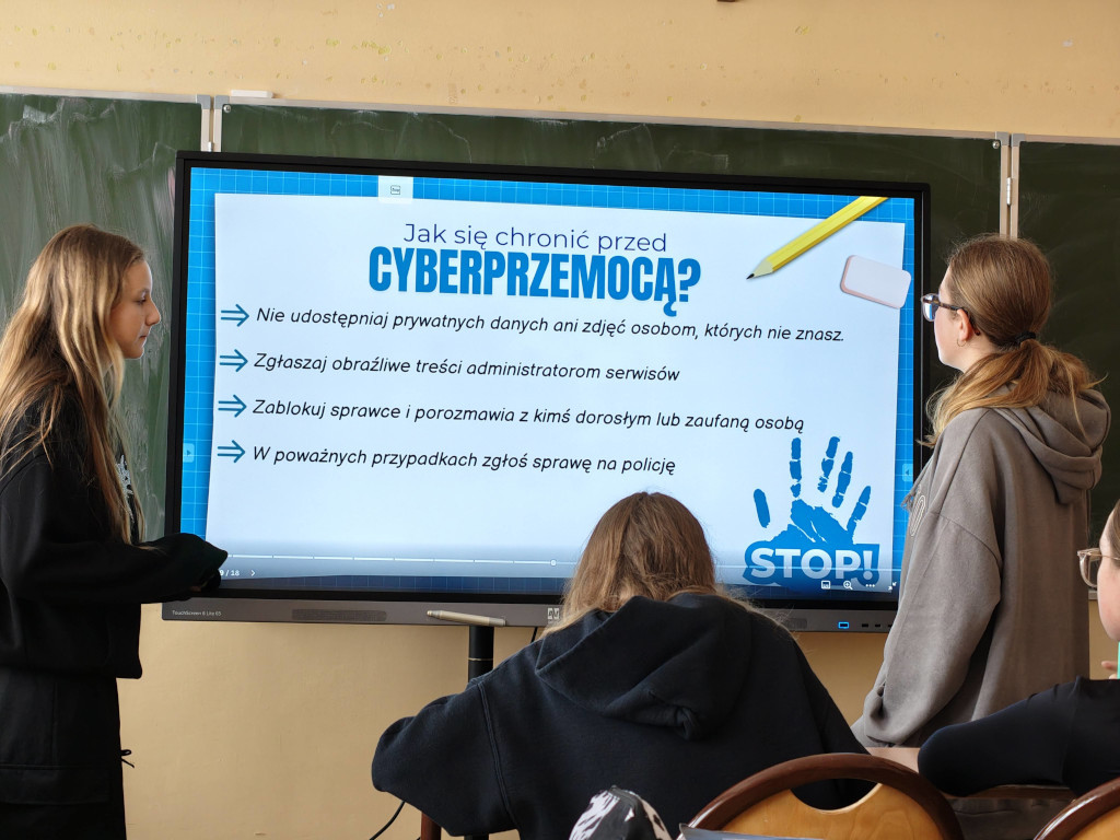 Uczniowie naszej szkoły wzięli udział w ogólnopolskim programie CyberMoc – Bezpieczny Internet, którego celem jest promowanie bezpiecznych i odpowiedzialnych zachowań w sieci. W ramach projektu młodzi twórcy z klasy 6 przygotowali własne materiały edukacyjne – filmy, gry i zadania – pokazujące, jak mądrze korzystać z Internetu i chronić swoje dane.