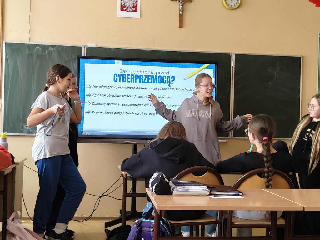 Udział w projekcie CyberMoc był dla uczniów doskonałą okazją do zdobycia wiedzy o zasadach bezpiecznego korzystania z Internetu w sposób praktyczny i angażujący. Dzięki kreatywnej pracy zespołowej uczniowie mogli połączyć naukę z zabawą, rozwijając przy tym swoje kompetencje cyfrowe, komunikacyjne i społeczne.