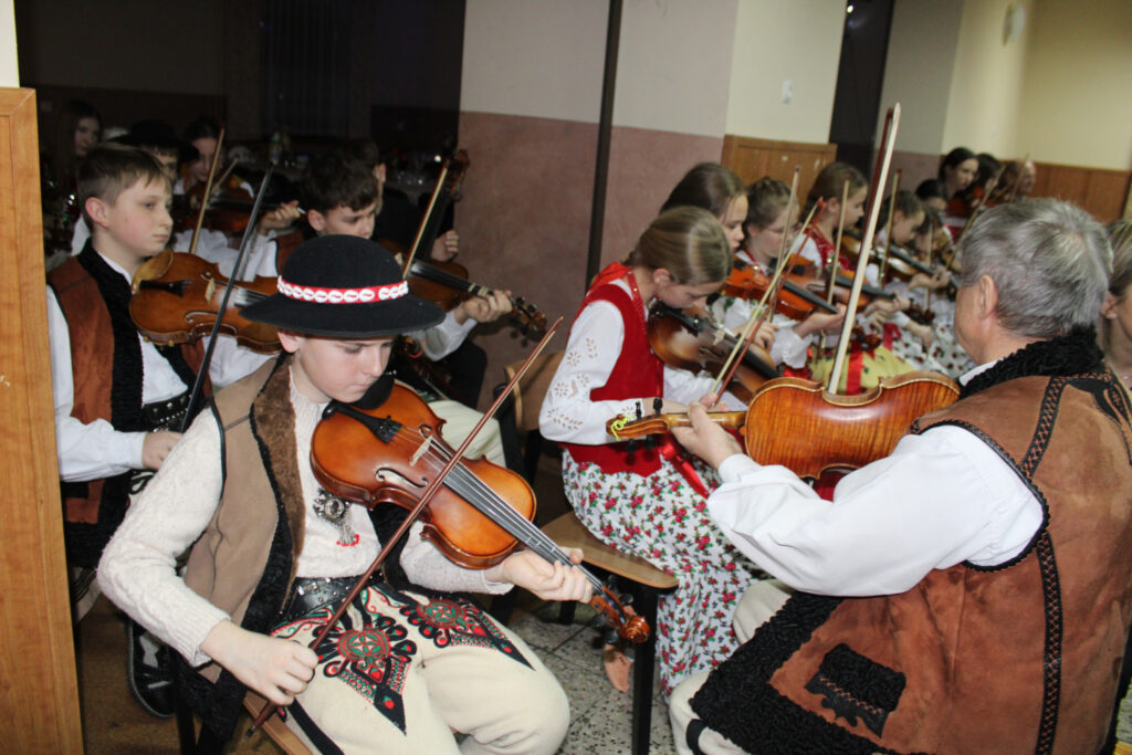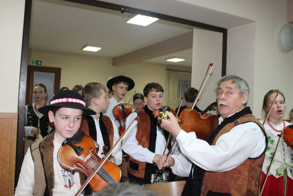 Na początku i na końcu przedstawienia po góralsku przygrywała dziecięco – młodzieżowa muzyka pana Włodka Majerskiego, który w miniony czwartek został uhonorowany odznaczeniem „Zasłużony dla Powiatu Nowotarskiego”.