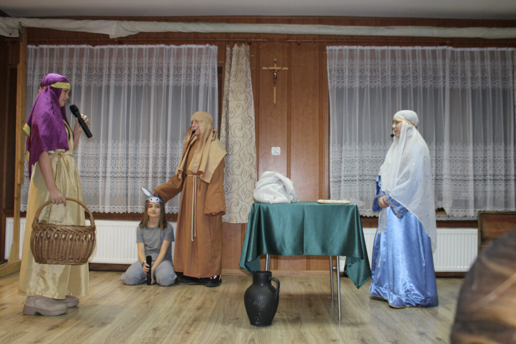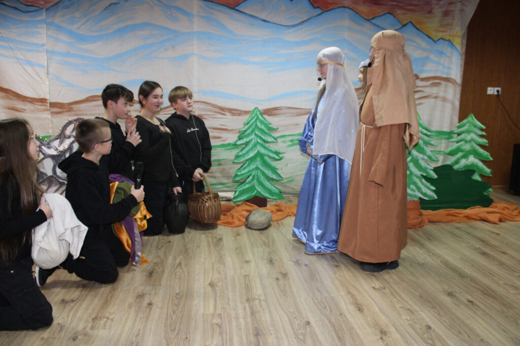 Jasełka pod tytułem „Dar drogi” opowiadają historię wędrówki Maryi i Józefa do Betlejem. Ukazują jednak drogę nie tylko w sensie fizycznym, ale przede wszystkim jako drogę spotkań z drugim człowiekiem. Po drodze Święta Rodzina napotyka ludzi ubogich i potrzebujących pomocy. Choć sami nie mają wiele, dzielą się tym, co najcenniejsze – dobrem, życzliwością i sercem.