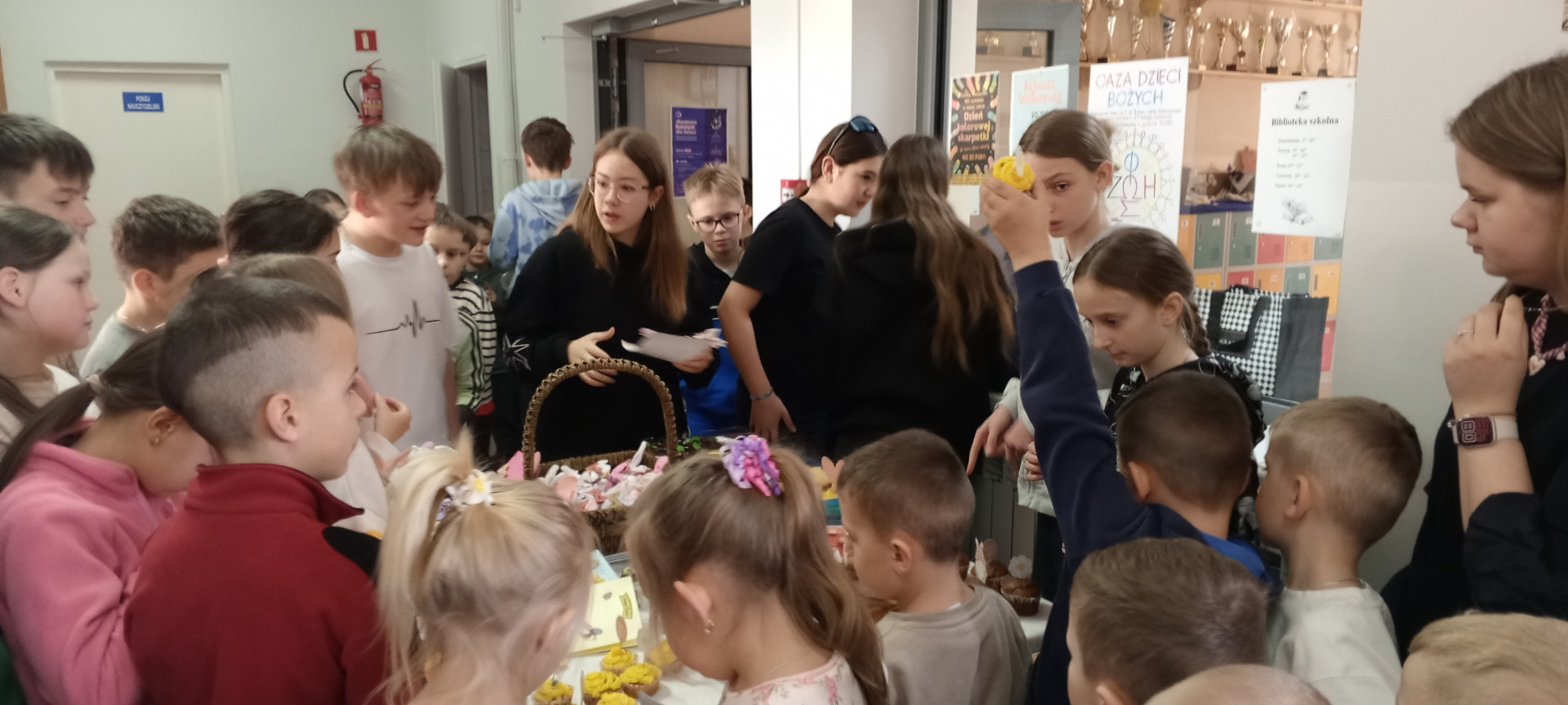 Dzięki zaangażowaniu szkolnego wolontariatu, który podczas warsztatów wielkanocnych przygotował ozdoby, kartki świąteczne oraz słodkie wypieki, udało się zebrać 843 zł i 50 gr. Dochód ze sprzedaży został przekazany Pani Ani na rzecz Fundacji, która pomaga osobom dążącym do samodzielności i pomimo losu przeciwności. Dzień wcześniej, w czwartek, mieliśmy przyjemność gościć Panią Anię w naszej szkole – było to dla nas bardzo inspirujące i wartościowe spotkanie.