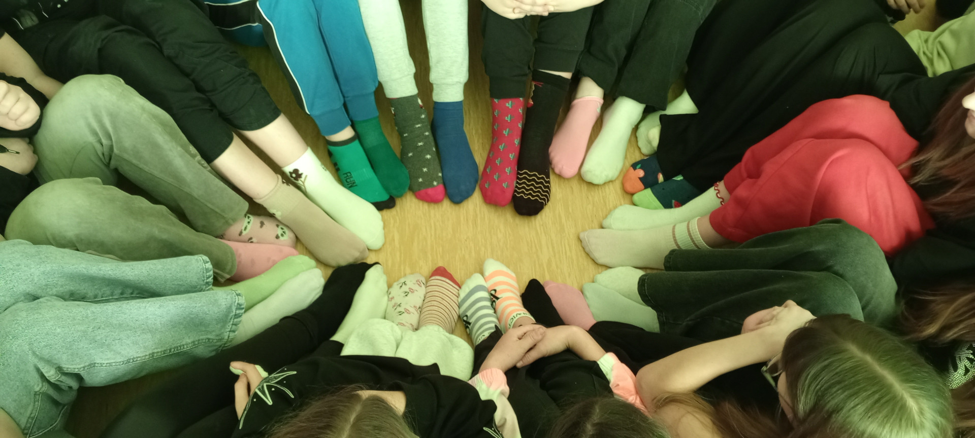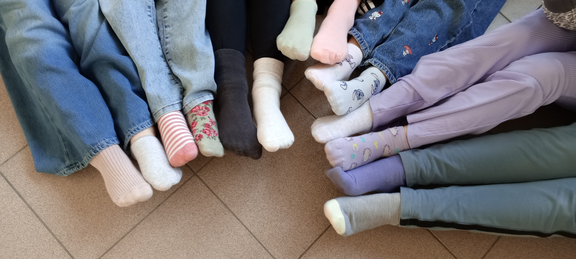 Poza Dniem Bez Plecaka jednocześnie obchodziliśmy Dzień Solidarności z Osobami z Zespołem Downa, znany jako akcja „Skarpety nie do pary”. Społeczność szkolna chętnie włączyła się w inicjatywę, zakładając kolorowe, niepasujące skarpetki jako symbol akceptacji, różnorodności i wsparcia dla osób z trisomią 21.