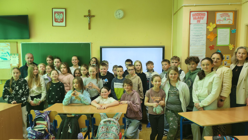 W naszej szkole dnia 25 marca odbyło się wyjątkowe spotkanie dla uczniów klas 1–8, nauczycieli oraz rodziców z udziałem Pana Pawła Boguszewskiego założyciela Fundacji Całym Sercem – Nadzieja, prywatnego detektywa z ponad 13-letnim stażem, społecznego kuratora sądowego od 23 lat, mediatora oraz edukatora, który na co dzień słucha, analizuje i pomaga zrozumieć, co naprawdę dzieje się z dziećmi i młodzieżą. Podczas spotkania poruszone zostały niezwykle ważne i aktualne tematy dotyczące bezpieczeństwa dzieci i młodzieży, w tym problematyka uzależnień, przemocy rówieśniczej, hejtu, wykluczenia oraz sytuacji kryzysowych, z jakimi coraz częściej mierzą się młodzi ludzie. Pan Boguszewski, bazując na swoim wieloletnim doświadczeniu, przedstawił konkretne przykłady oraz praktyczne wskazówki, pokazując, jak rozpoznawać sygnały ostrzegawcze i jak skutecznie reagować oraz wspierać dzieci w trudnych momentach. Spotkanie miało nie tylko charakter informacyjny, ale również refleksyjny. Skłoniło do zatrzymania się i spojrzenia nie tylko przez rodziców i nauczycieli, ale także przez samych uczniów na codzienne relacje z większą uważnością i wrażliwością. Była to także cenna okazja do zadawania pytań oraz wymiany doświadczeń. Pan Paweł Boguszewski to człowiek o ogromnej pasji i zaangażowaniu, co było wyraźnie widoczne podczas spotkania. Jego poświęcenie oraz autentyczna chęć niesienia pomocy dzieciom, młodzieży i rodzinom zrobiły na uczestnikach duże wrażenie.